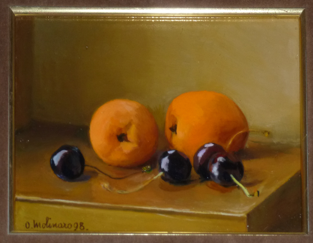 dem Gemälde an der Wand auffällig glichen. Habe daraufhin die Früchte auf der Tischfläche